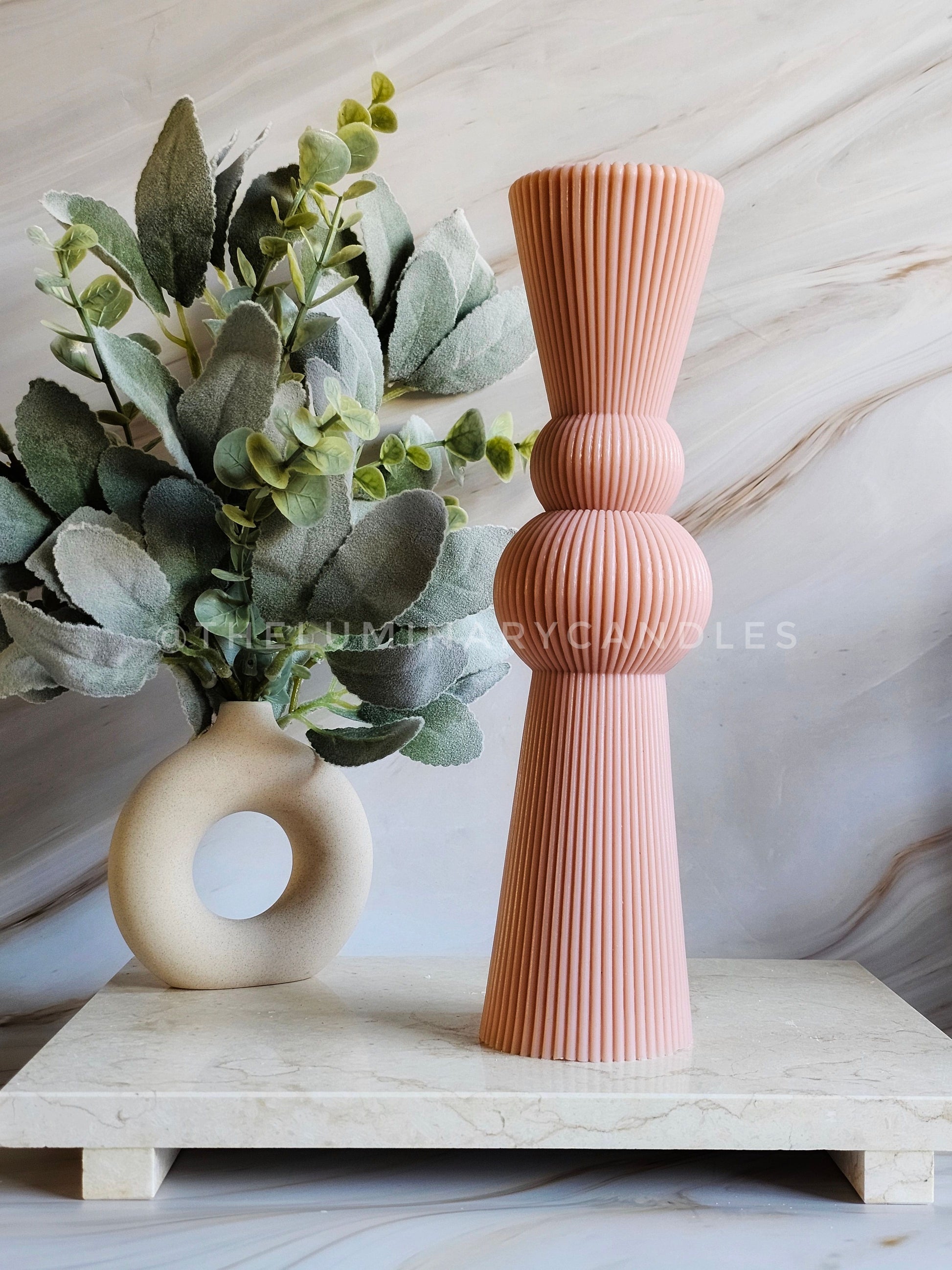The Lex is an elegant and striking tall, rippled candle that features two perfectly rounded sections, creating a visually captivating design.